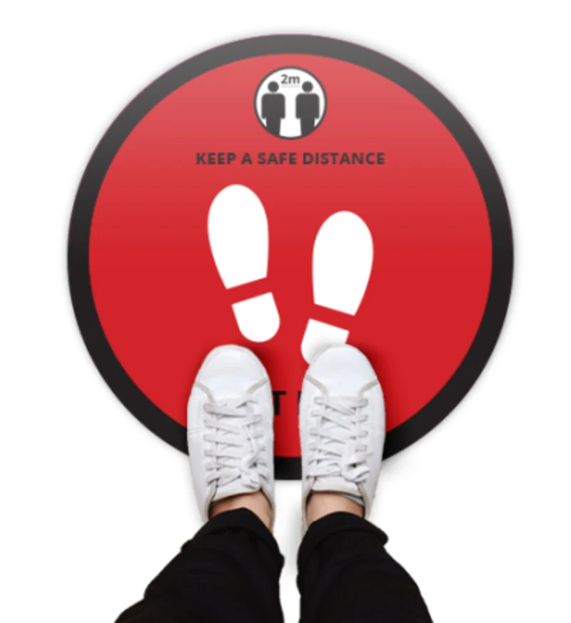 Round Floor Safety Stickers Covid 19 Red